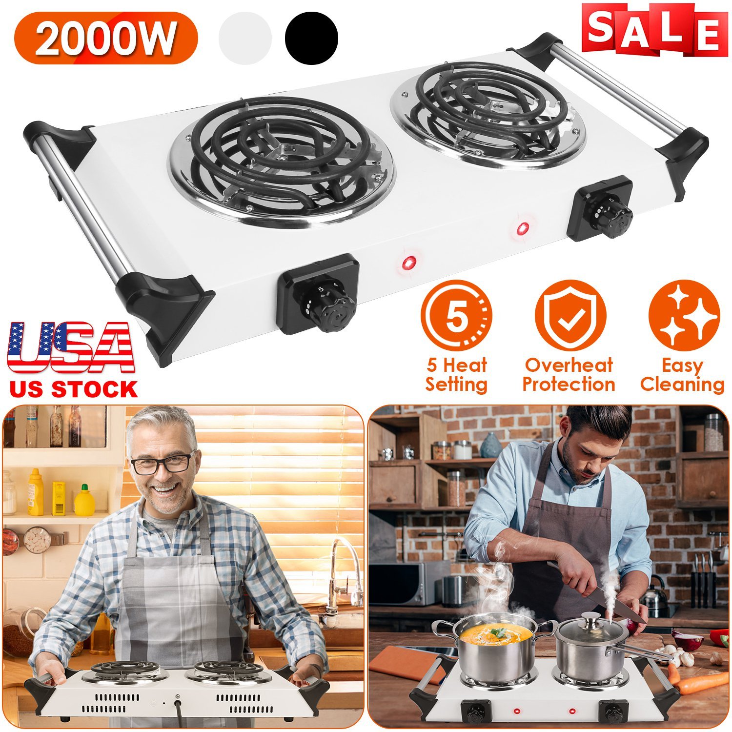 Home > 2000W Electric Dual Burner Portable Coil Heating Hot Plate Stove Countertop RV Hotplate With 5 Temperature Adjustments Portable Handles