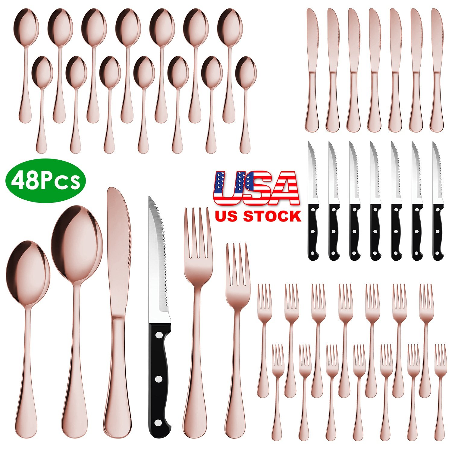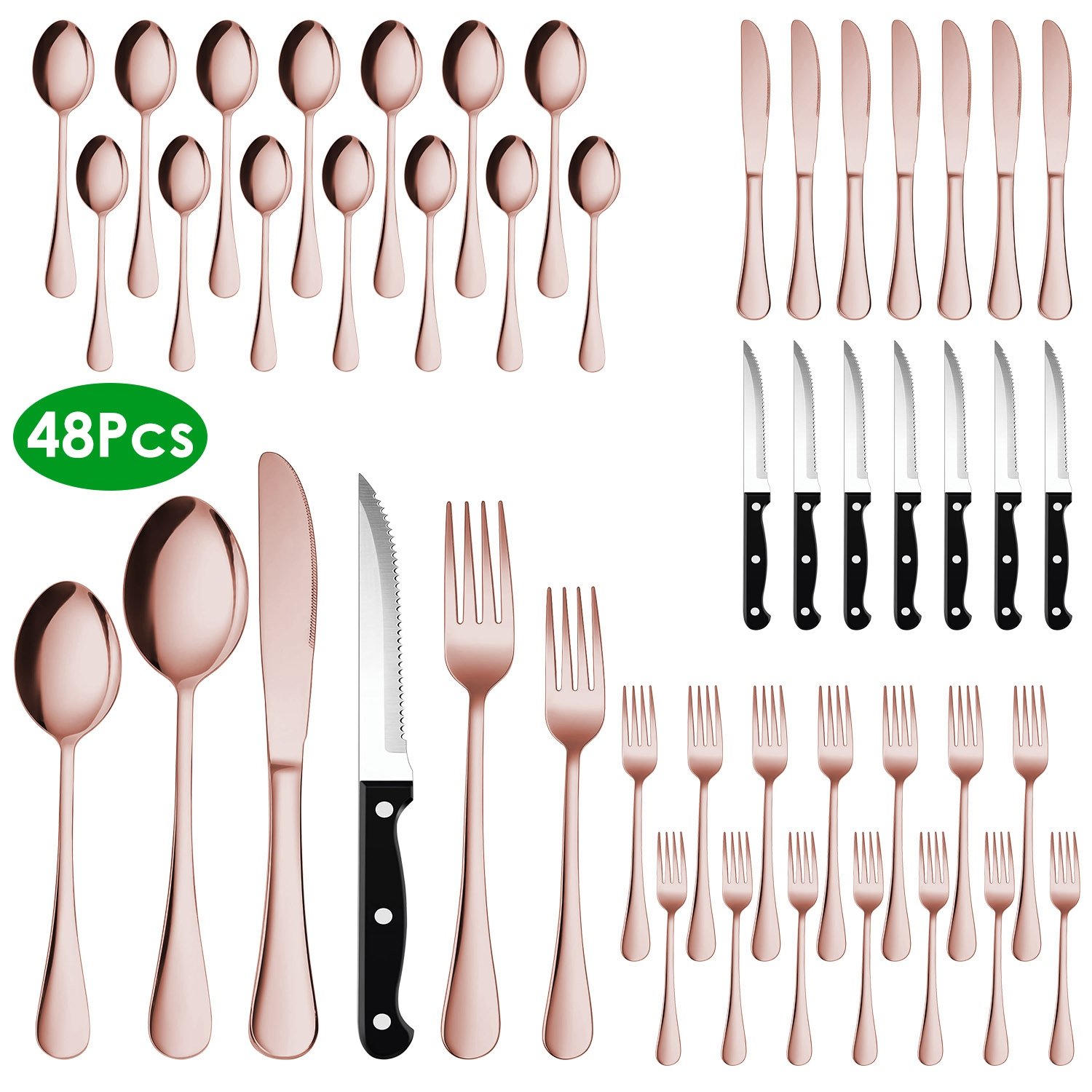 Home > 48-Piece Silverware Set Stainless Steel Flatware Cutlery Set Tableware Eating Utensils for 8 with Knife Fork Spoon Dishwasher Safe for Home Kitchen Re
